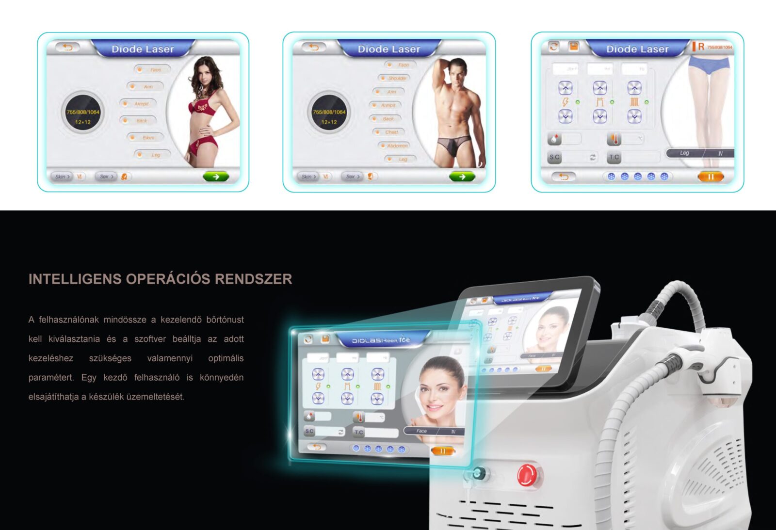• 808 nm/1064nm/755nm/940nm-es dióda lézer: biztonságos, gyors, megbízható, tartós.